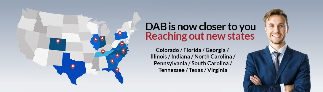 DAB is licensed by the State of Florida, Colorado, Georgia, South Carolina, North Carolina, New Jersey, Texas, Tennessee, Idaho, Illinois, Missouri, Pennsylvania & Virginia.